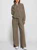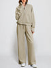 This lounge tracksuit comprises a half-zip sweatshirt and high-waist wide-leg sweatpants. With ribbed cuffs, a v-neck, drop shoulder, long sleeves with thumbholes design, and spacious pockets, it creates effortlessly an oversized style and chic look for you.